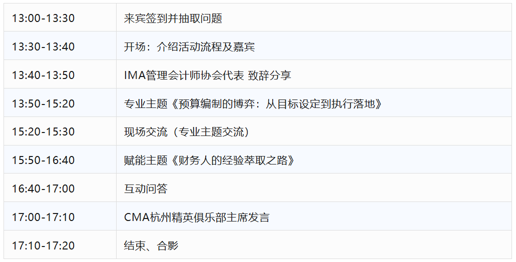 参加人员:CMA持证者、企业负责人、财务总监、财务经理、预算管理、业务负责人及相关管理人员。