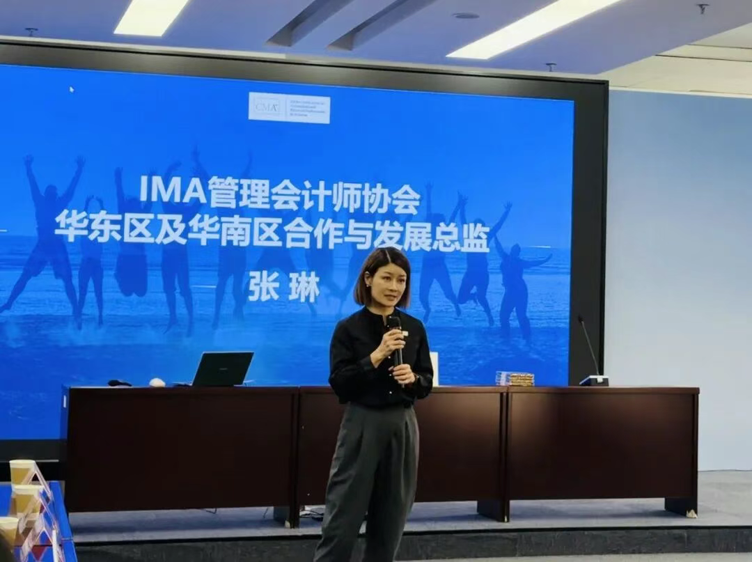 活动伊始,IMA管理会计师协会华东区及华南区合作与发展总监张琳女士致辞,她代表IMA管理会计师协会感谢宁波CMA持证者及考生多年来的支持,协会也不断在政府、高校、企业中推动CMA的认可及影响力,协会已经与多家高校及企业建立了深厚的战略合作关系。她表示协会高度重视宁波CMA持证者后续的线下交流活动,会为宁波CMA们带来更多实用共融、智趣开放的专题活动。
