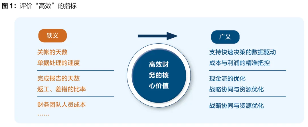 相比之下,“高效的财务团队”是一个更具象的概念,重点关注财务团队自身的组织构建、流程管理、目标执行等方面的能力。