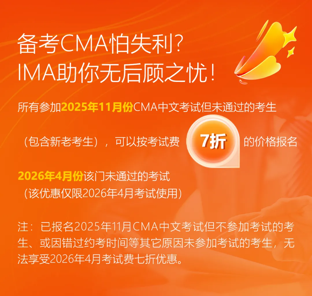 IMA管理会计师协会贴心为您解锁全新保障机制——“补考7折” 政策在此次优惠期间内一并上线!